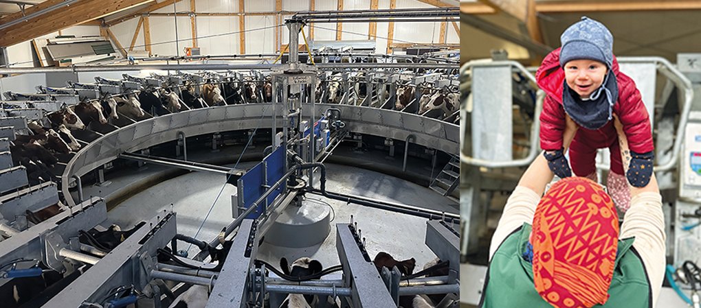 Mit seiner Frau Fabienne und dem vor einem halben Jahr geborenen Sohn Henry komplettieren sie das starke Familienteam. Nach der Aussiedlung mit Neubau und dem neuen R2evolution Melkkarussell im April 2022 konnte die Kuhzahl von 160 auf 230 Tiere aufgestockt werden. Gleichzeitig erhöhte sich die Milchleistung bereits nach kurzer Zeit von 28 auf 30 Liter pro Kuh und Tag.