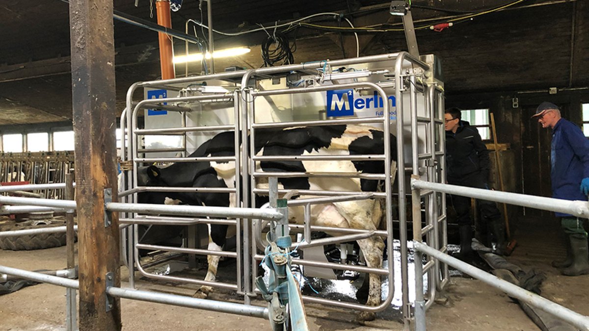 Friedhelm Eicker und seine Frau Karin bewirtschaften gemeinsam mit Tochter Katharina in der siebten Generation einen Milchkuhbetrieb in Radevormwald. Gemeinsam mit Katharinas Lebensgefährtin Lena Causemann halten sie 90 Kühe plus Nachzucht und bewirtschaften 90 Hektar, die zum Teil als Grünland unmittelbar an die Betriebsgebäude angrenzen. Im letzten Jahr entschied man sich, nicht zuletzt aus arbeitswirtschaftlichen Gründen, den vierzig Jahre alten Doppel-6er Fischgrätenmelkstand durch zwei Melkroboter von Lemmer-Fullwood zu ersetzen. Um dabei die vorhandenen Stallkapazitäten bestmöglich auszuschöpfen, sollten die beiden neuen M2erlins in den alten Melkstand integriert werden. Durch die kompakten Abmessungen sowie der Flexibilität der Maschine, war die Platzierung im vorhandenen Melkstand problemlos möglich. Damit die Kühe auch während des Rückbaus des alten Melkstands weiter gemolken werden konnten, wurde der erste Melkroboter vorübergehend auf dem Futtertisch installiert.