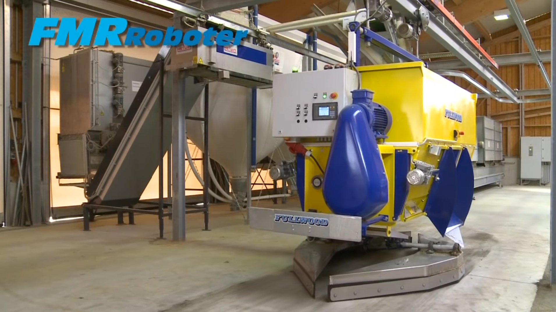 In der Futterküche befüllt sich der FMR-Roboter selbst, indem er nach der vorgegebenen Rezeptur die erforderlichen Grund- und Kraftfuttermengen aus den Vorratsbehältern entnimmt. Das Futter wird mithilfe von Wiegestäben exakt eindosiert und über zwei Horizontalschnecken zur Mitte hin gemischt. Die Schnecken können für langfaseriges Grundfutter wie Ladewagen-Grassilage mit Schneidmessern ausgestattet werden.