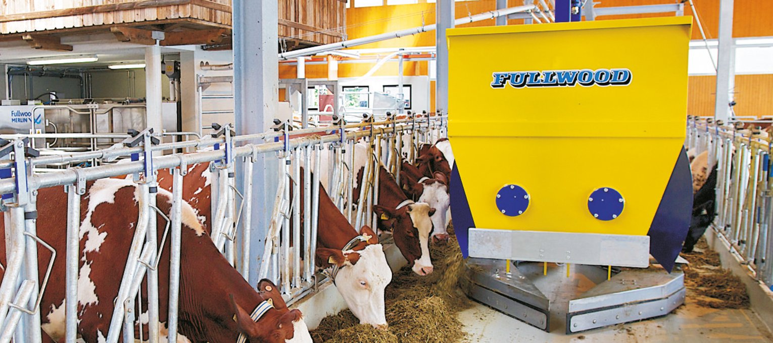 Die Fütterung der Milchviehherde lässt sich vollkommen automatisieren – mit dem FullMixedRation-Roboter (FMR-Roboter) von Lemmer-Fullwood. Er übernimmt das komplette Fütterungsmanagement vom Einwiegen über das Mischen bis hin zur Futtervorlage – für alle Tiergruppen und mehrmals am Tag zu festgelegten Zeiten. Sobald die Rezeptur für jede Futtermischung und die Fütterungsintervalle einmal am Bedienterminal eingegeben wurden, erledigt der FMR-Roboter alles Weitere.