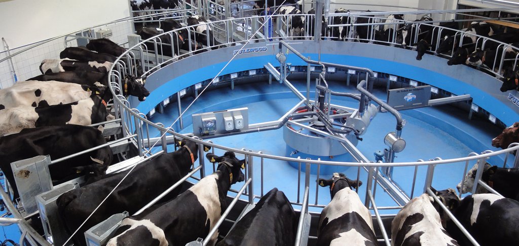 Optimale Arbeitsbedingungen sind kennzeichnend für die Rotary-Melkstände von FULLWOOD. Das gilt in besonderer Weise für die Fischgräten-Karussells. Die Kühe betreten die Plattform einzeln; daraus resultiert ein sehr ruhig fließender und zugleich effizienter Melkablauf, die Stundenleistungen pro Arbeitskraft sind beachtlich.